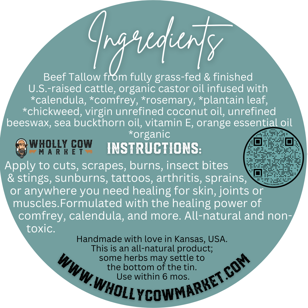 This balm could dangerously become your new favorite addiction. It's full of ingredients that compliment the naturally healing and anti-bacterial ingredients of beef tallow. Comfrey & calendula are the star ingredients in this healing balm along with many others. It's light orange scent compliments the natural scents of tallow and other oils and doesn't overpower and sting when applied to cuts, scrapes, bruises, stings, insect bites, and more. Experience the healing power of nature in this perfect, travel size tin. A little goes a long ways.