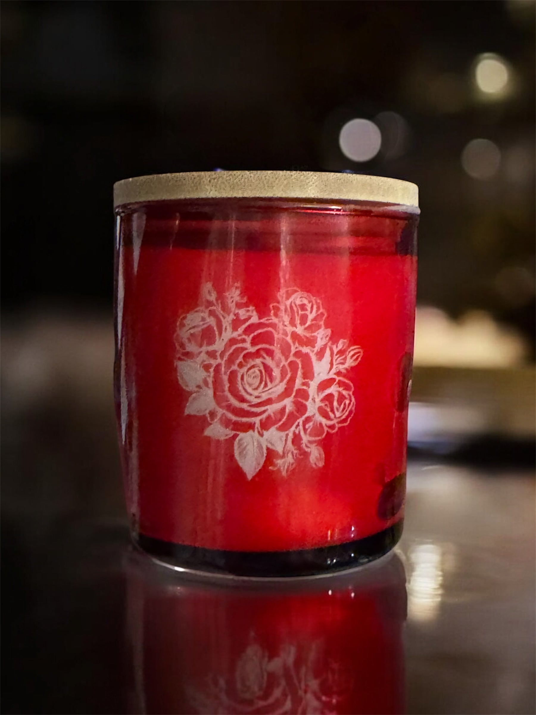 The rose heart glows when the candle is lit, thanks to the laser-engraved design on the front of the jar. "Rose Garden" is the perfect bridge between roses and spring. Its rose scent is fresh and floral, not overpowering. When the wax is all melted, reuse this container by placing a tealight in it.